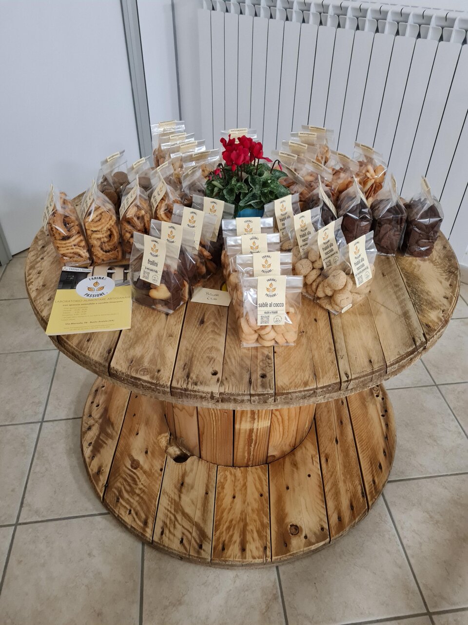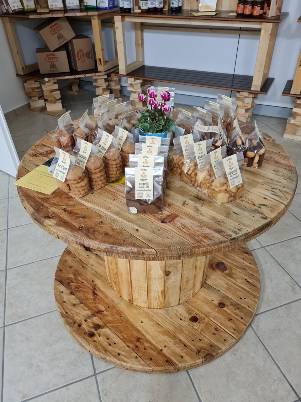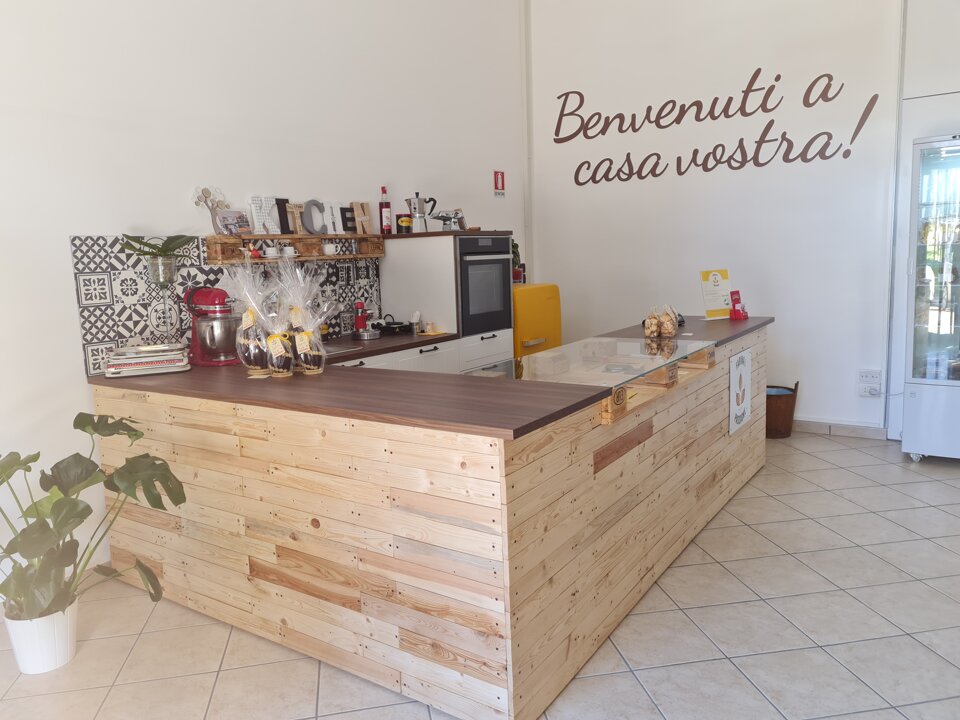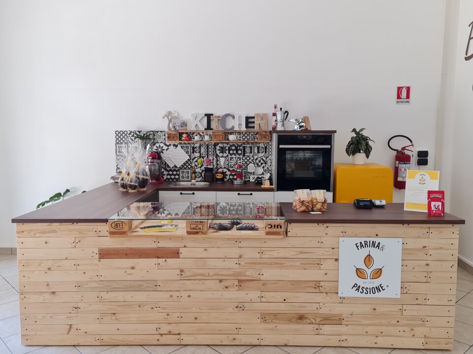 Farina e Passione non è solo un laboratorio artigianale e un punto vendita, ma è un luogo dove si respira un’atmosfera speciale. Il nostro negozio è un punto di incontro, uno spazio pensato per accogliervi e farvi sentire come a casa. Qui, ogni dettaglio è stato curato con amore, a partire dall’arredamento, interamente autoprodotto, che riflette la nostra passione per l’artigianalità e l’autenticità.